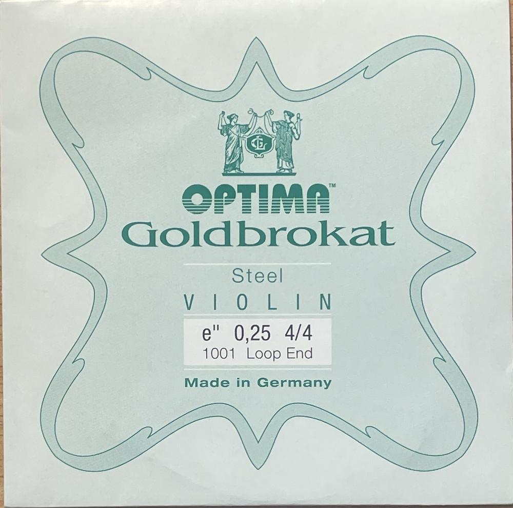 Optima Vioilin Strings. Lenzner Goldbrokat E w/loop end, steel core, Tin plate, 25.00 gauge, Weak. 4/4.